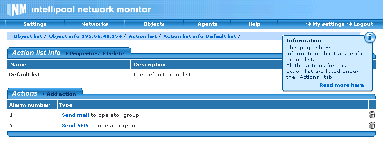 Esta é a tela de uma lista de ações (action list). Elas são usadas para definir eventos a ser acionados quando os agentes entrarem em estado de alarme.